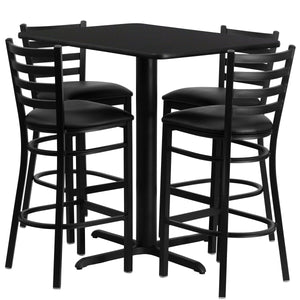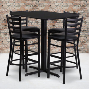 24''W x 42''L Rectangular Black Laminate Table Set with 4 Ladder Back Metal Barstools - Black Vinyl Seat (HDBF1017-GG)
