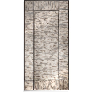 The Maxwell Leaner mirror is heavily antiqued with a handsome window pane detail.