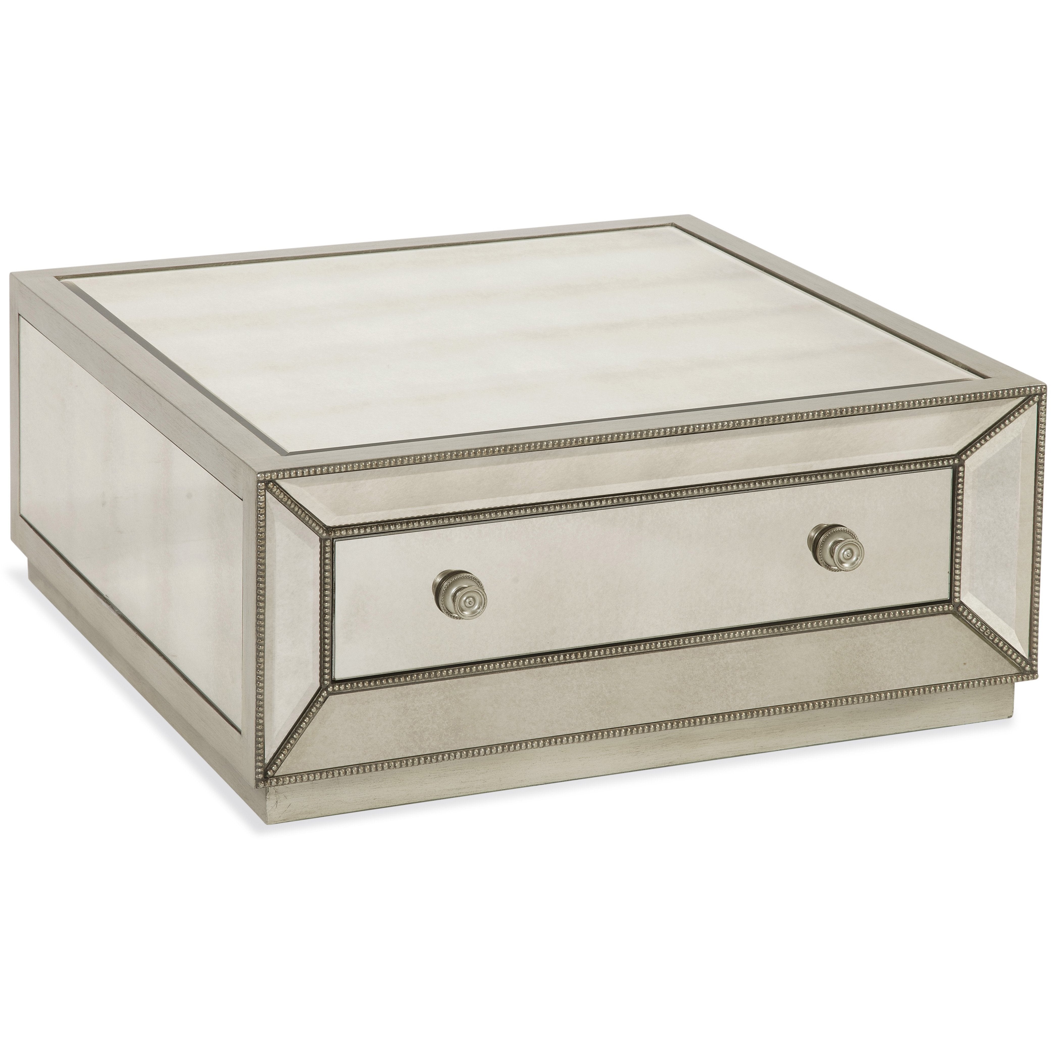 The Murano Square Cocktail Table delivers Old World Charm with a distinctive Modern Glam feel. Featuring antiqued mirror panels and silver leaf "beading" with shadowbox framing around the faces of the furniture.