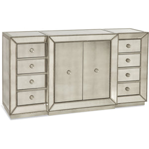 The Murano Server features antiqued Picture-Frame edged mirror panels and a 100% Silver Leaf beaded detail that gives Murano modern elegance, with an Old World charm.