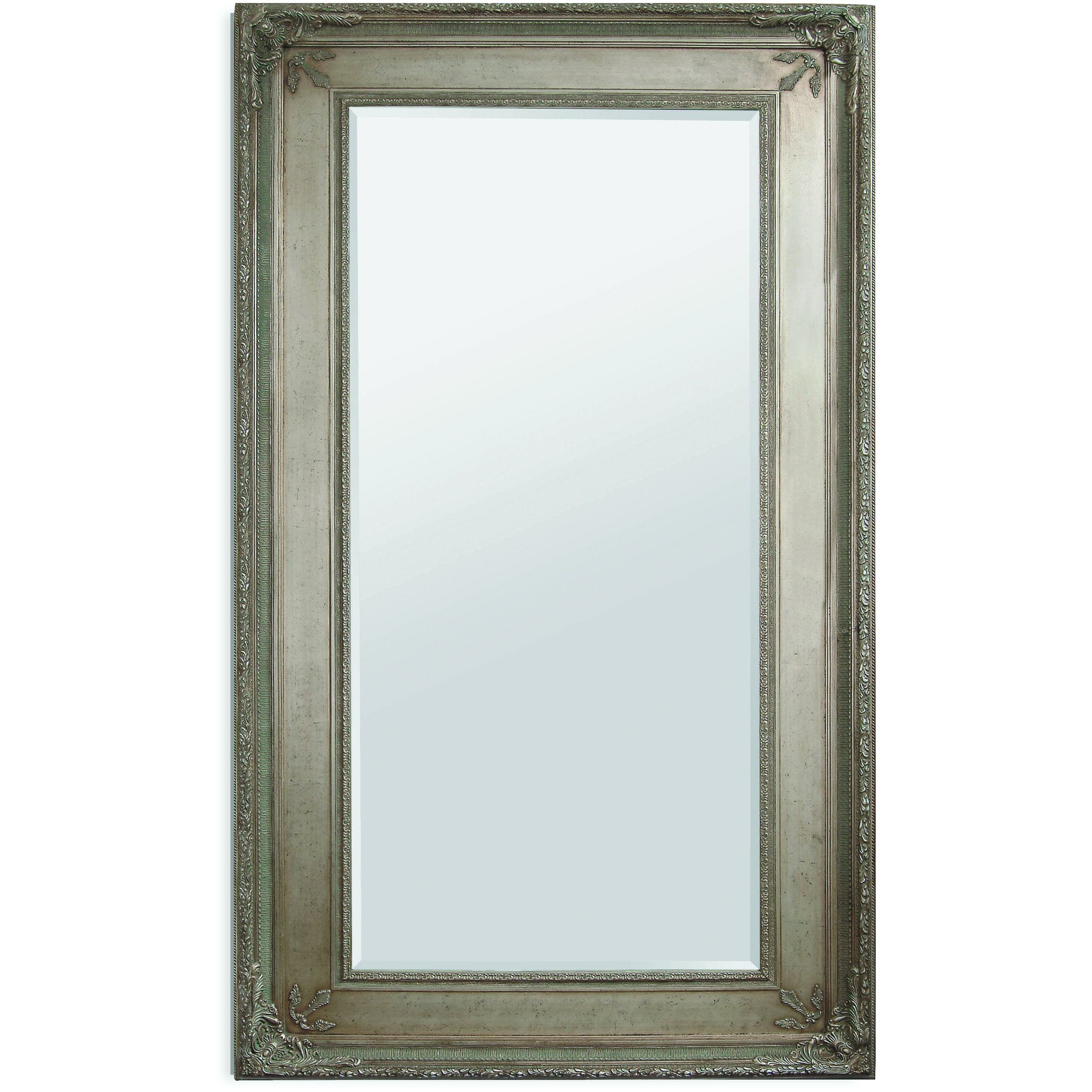 The Prazzo Leaner mirror features intricate designs work and is made from wood. It is finished in antique silver leaf and includes a center beveled mirror.