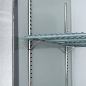 With this Reach-In refrigerator, you can keep your modest back-of-house room well-stocked. With multiple adjustable shelves and a high internal capacity, there is plenty of storage space. It has a smaller footprint, which makes it excellent for small settings. This item, with a stainless steel exterior and a painted aluminum inside, is tough and dependable in busy kitchens.