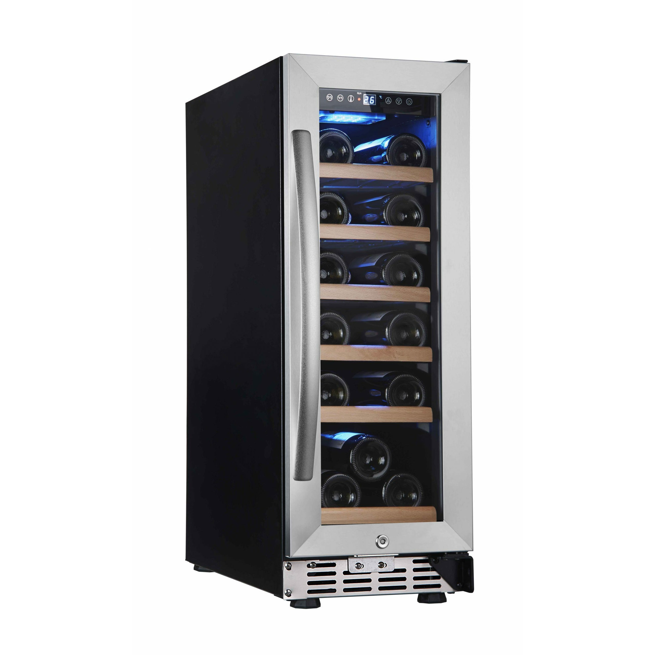5 hardwood shelves Plus 1 half-size shelving, built-in or under-counter with front ventilation Led light, holds up to 18 standard wine bottles.