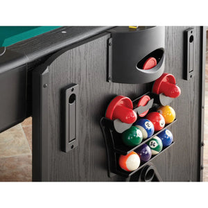 Includes all of the accessories needed to play the games you love such as pool cues and billiard balls, hockey pucks and pushers.