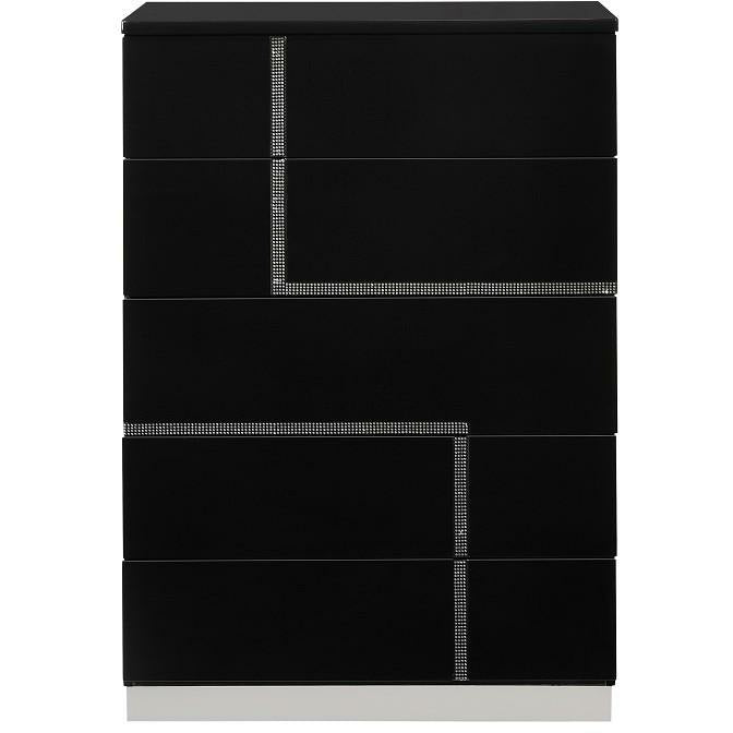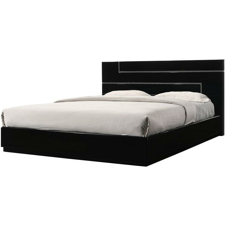 J&M Furniture's Lucca Bedroom has a unique design and outlook for a modern bedroom. This black lacquered finish set, which is beautifully complimented with crystals, will enhance the look of bedrooms of various sizes and hues.