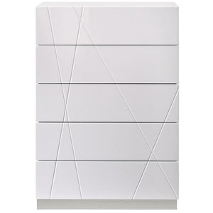 J&M Furniture's Naples Bedroom has a unique design and outlook for a modern bedroom. This white lacquered finish set will enhance the look of bedrooms of all sizes and hues, aiming for a mild yet sophisticated effect.