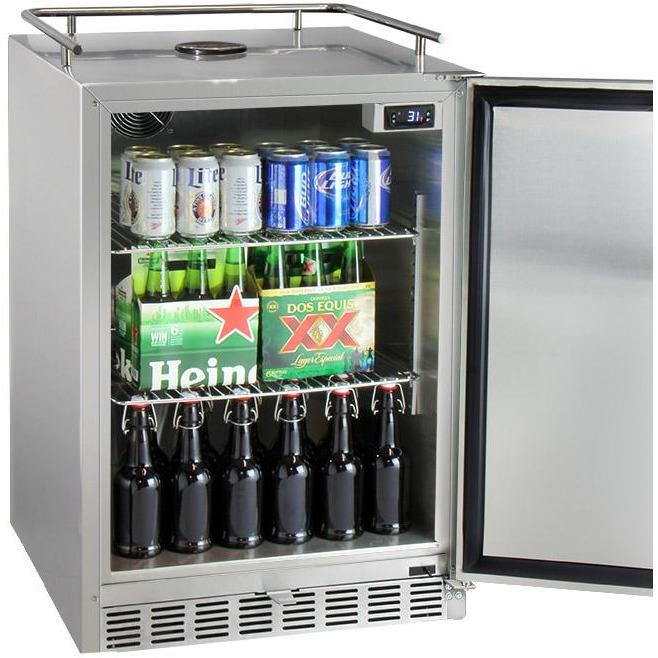 The beautiful stainless steel interior is more durable than the plastic liner found in many competing models and easy to clean. Enough floor space is provided to house a full size keg, two quarter slim kegs or up to three 5 gallon kegs for a variety of configurations. PLEASE NOTE: Will not hold 50L European kegs.