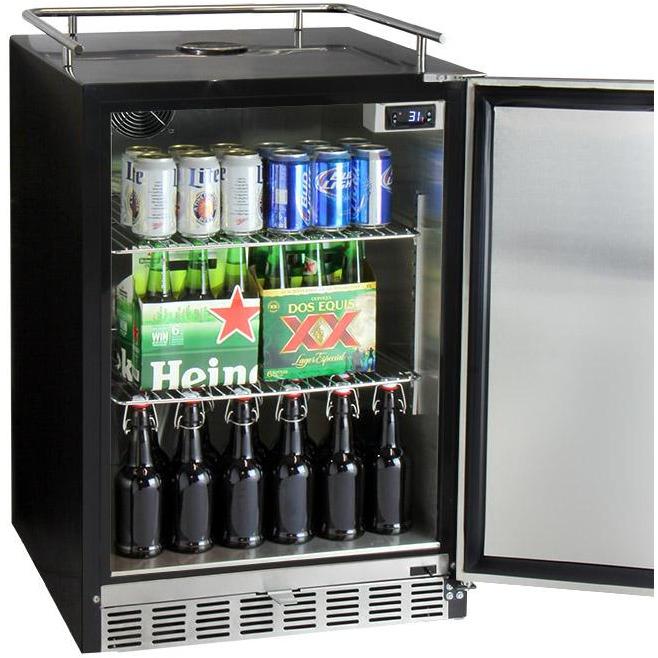 The beautiful stainless steel interior is more durable than the plastic liner found in many competing models and easy to clean. Enough floor space is provided to house a full size keg, two quarter slim kegs or up to three 5 gallon kegs for a variety of configurations. PLEASE NOTE: Will not hold 50L European kegs.