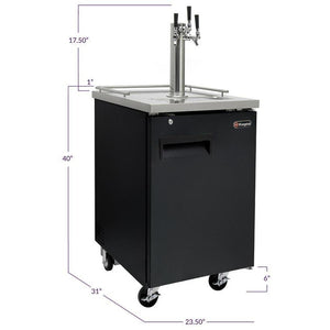 4" locking casters make this beer dispenser easy to move, while the built-in drip tray and steel interior make it easy to clean. A 1/7 hp compressor provides cooling and cool air is fan-forced into the tower to ensure your beer is cold all the way up to the faucet. It comes with an air-cooled 3" diameter draft tower, so if your direct draw will be provided by your beer distributor, you're all set. Beverage Factory offers the ability to add a custom draft system with our top quality selection of regulators, couplers and fittings. See the available options below and feel free to contact our expert staff with any questions you may have.