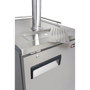 4" locking casters make this kombucha keg dispenser easy to move, while the built-in drip tray and steel interior make it easy to clean. A 1/7 hp compressor provides superior cooling and cool air is fan-forced into the tower to ensure your iced coffee stays cold all the way up to the faucet.