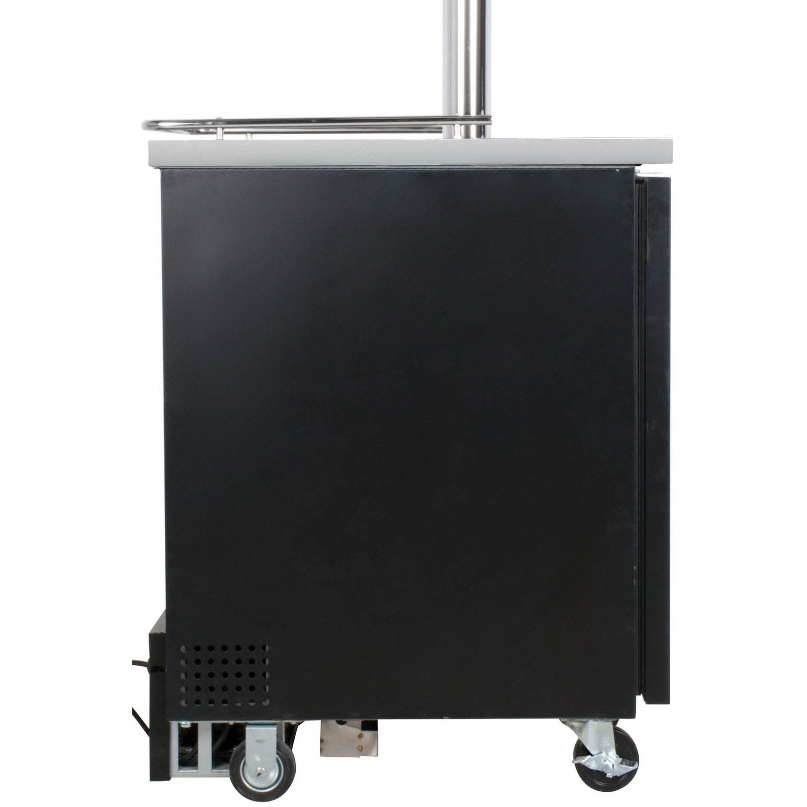 4" locking casters make this kombucha kegerator easy to move, while the built-in drip tray and steel interior make it easy to clean. A 1/7 hp compressor provides cooling and cool air is fan-forced into the tower to ensure your kombucha stays cold all the way up to the faucet.