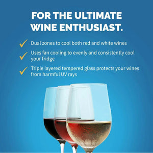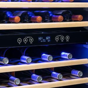 The NewAir 24" Built-In Dual Zone 46 Bottle Wine Fridge features digital temperature controls that put you in charge. Select your ideal serving temperatures down to the degree for optimal wine storage.