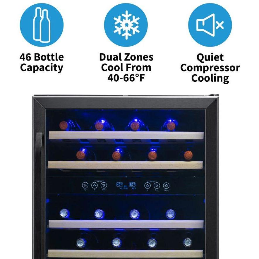 NewAir 24” Built-in 46 Bottle Dual Zone Black Stainless Steel Wine Fridge (NWC046BS00)