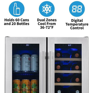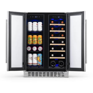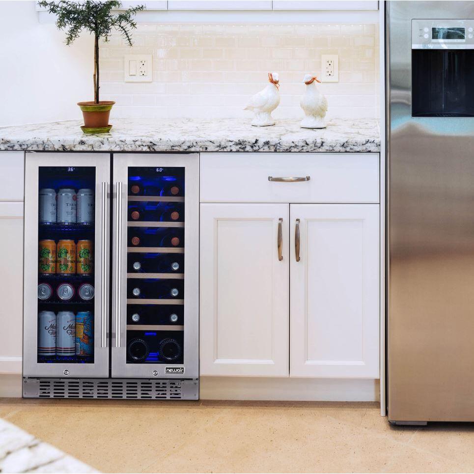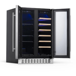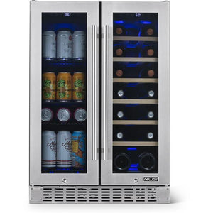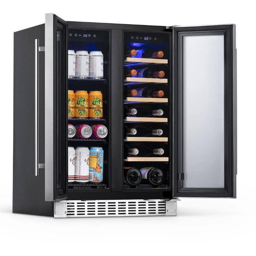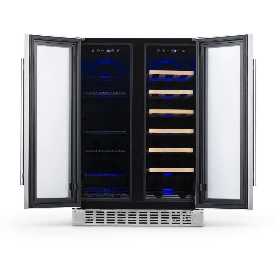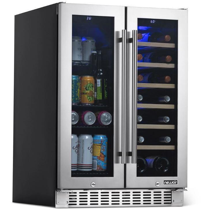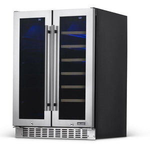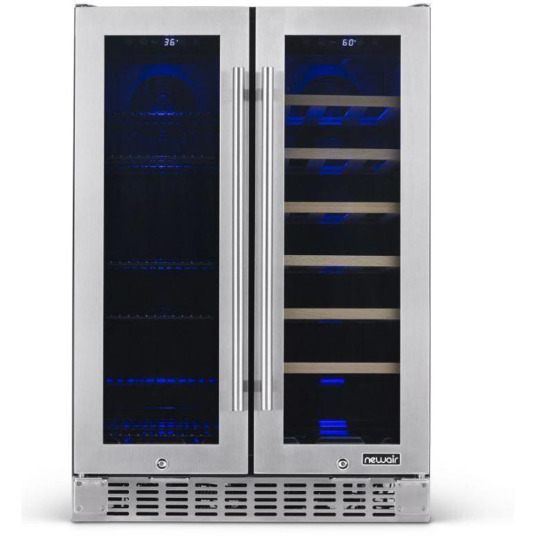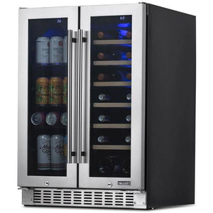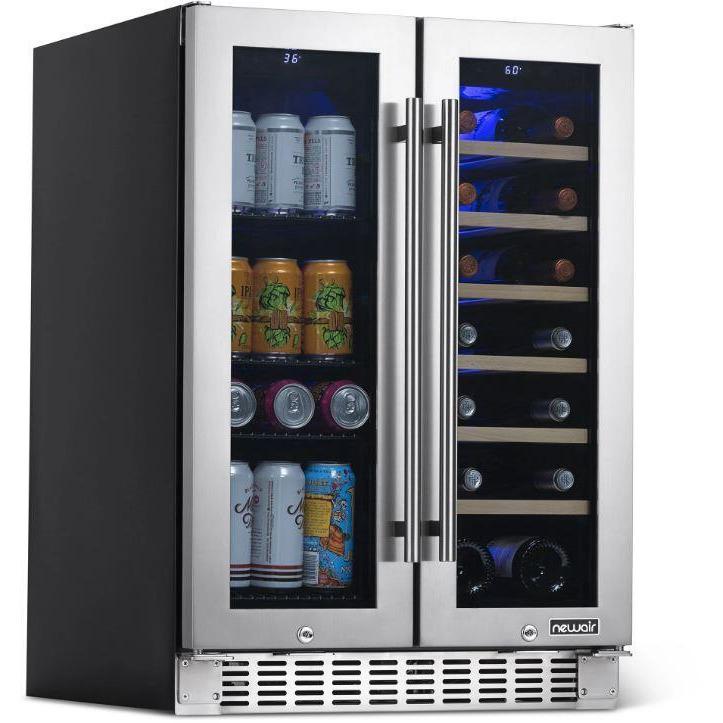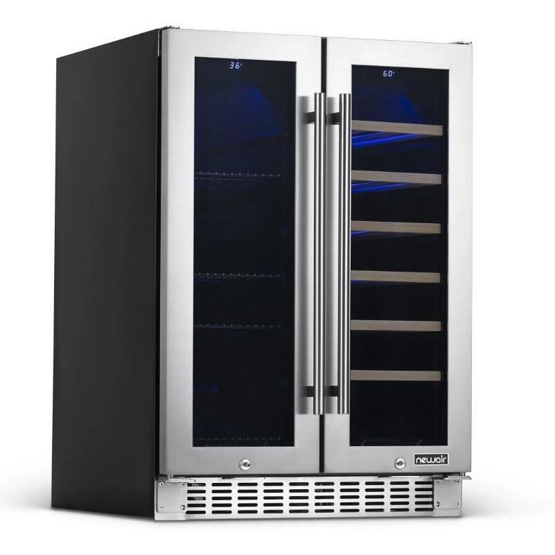 NewAir 24” Premium Built-in Dual Zone 18 Bottle and 58 Can French Door Wine and Beverage Fridge (NWB080SS00)