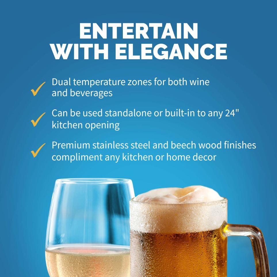 - Dual temperature zones: store wine in the right zone (41-72F) and beverages in the left zone (36-72F)