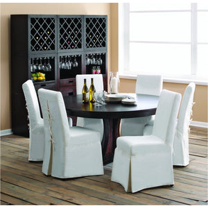 Because the black and white on the frame may be switched out to create a fresh look in every area, the Pacific Beach Dining Chair Slipcovers are versatile. It's constructed of 100% cotton canvas and should only be dry-cleaned.