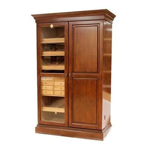 This piece of timeless furniture is for the cigar and wine enthusiasts; some may say you can't have one without the other. This cabinet will fulfill anyones needs, holding up to 3000 cigars and storing up to 40 bottles of wine. Made from fine mahogany and Spanish cedar, this humidor is for anyone who wants to showcase the wide range of cigars and wine they have.