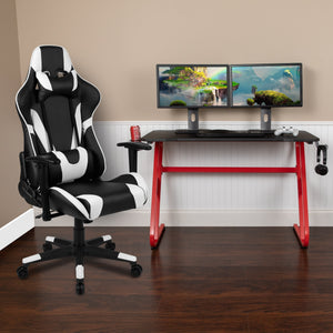 Red Gaming Desk and Black Reclining Gaming Chair Set with Cup Holder and Headphone Hook (BLN-X20RSG1030-BK-GG)