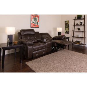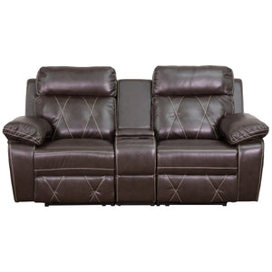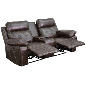 Reel Comfort Series 2-Seat Reclining Brown Leather Theater Seating Unit with Straight Cup Holders (BT-70530-2-BRN-GG)