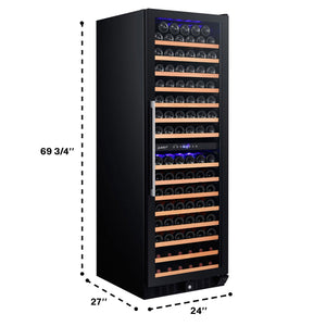 - Wine refrigerator dimensions: 69 3/4" H x 24" W x 27" D (29" including handle). Weight: 269 lbs