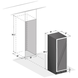 - Wine refrigerator dimensions: 69 3/4” Height x 24” Width x 27” Depth (29" including the handle). Weight - 269 lbs.