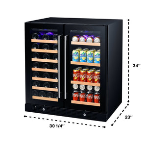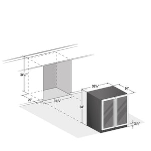 - Wine & Beverage cooler dimensions: 34” Height x 30 1/4” Width x 23” Depth (25" including handle).